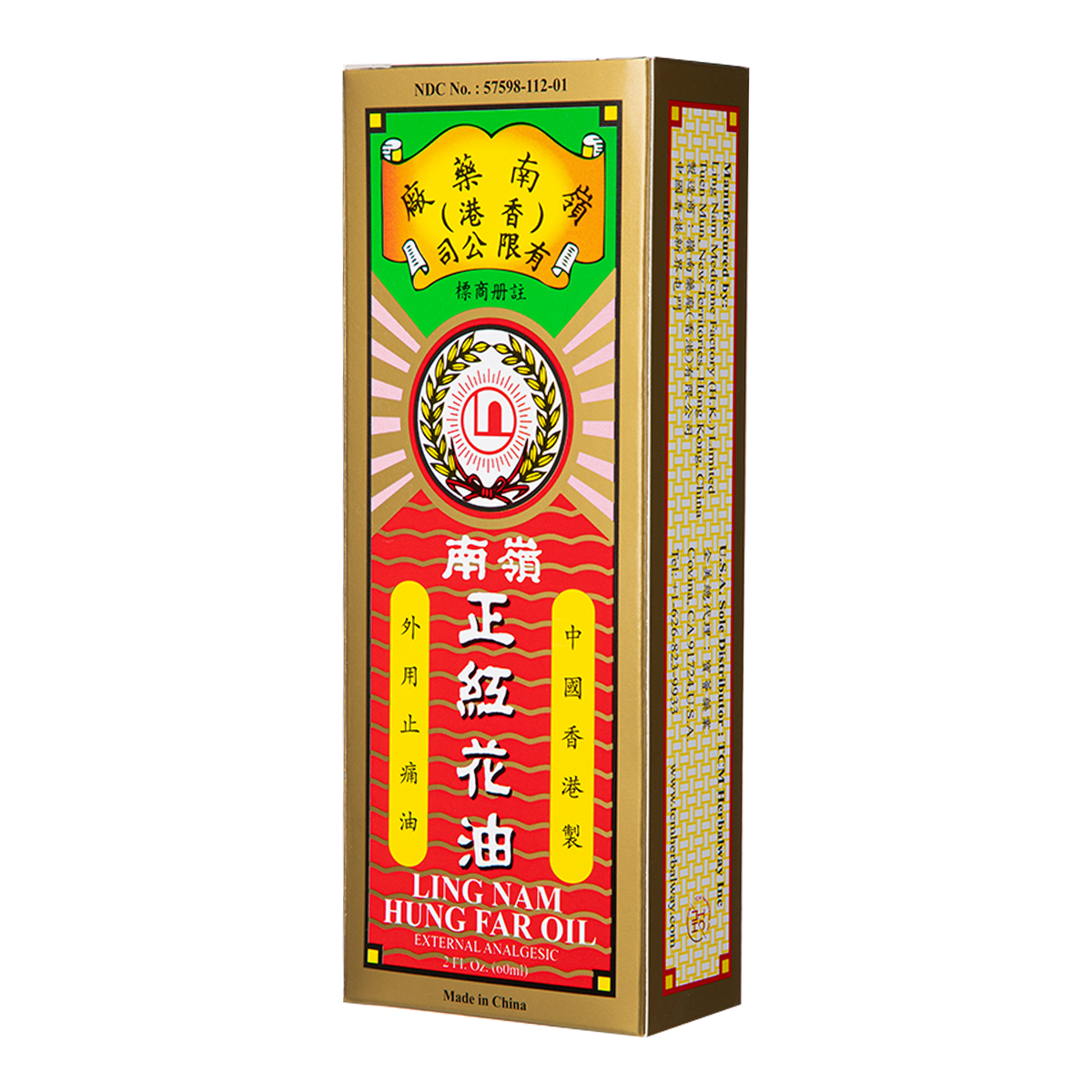 LING NAM Hung FA Red Flower External Analgesic Oil – 60ml / 2 fl oz – 12 bottles per box