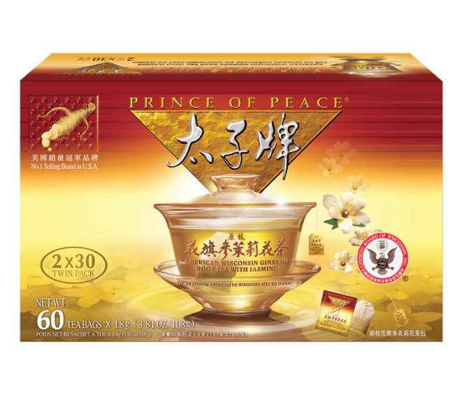 Pure American Wisconsin Ginseng (Panax Quinquefolius) Roots and Premium Jasmine.