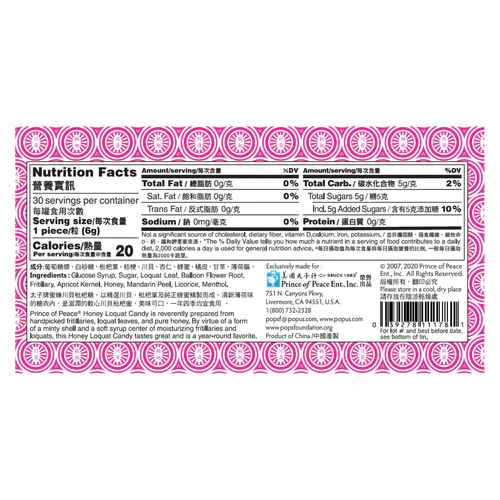 Glucose Syrup, Sugar, Loquat Leaf, Balloon Flower Root, Fritillary, Apricot Kernel, Honey, Mandarin Peel, Licorice, Menthol.
